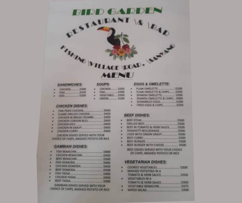 Welkom bij Bird Garden Restaurant & Bar, uw culinaire 'thuis ver van huis' in Sanyang.